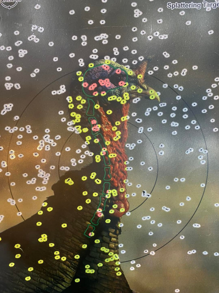 All of our hand made turkey rounds are filled with a non-toxic alloy called TUNGSTEN SUPER SHOT. It’s characteristics deliver the most superior patterns and effective kill ranges of any shell on the market.
