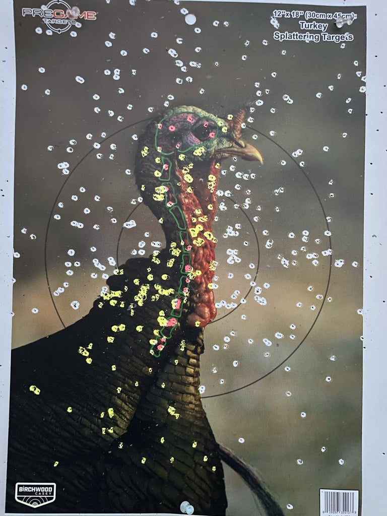 All of our hand made turkey rounds are filled with a non-toxic alloy called TUNGSTEN SUPER SHOT. It’s characteristics deliver the most superior patterns and effective kill ranges of any shell on the market.